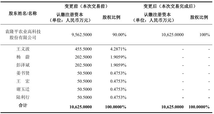 股权结构方面,隆平高科此前持有联创种业90%股权,后者剩余的10%股权集中在王义波、杨蔚、彭泽斌等7名自然人股东手中。10月10日,隆平高科临时董事会审议通过了受让联创种业剩余股权的议案,以2024年12月31日为评估基准日,联创种业100%股权对应的评估价值为71.5亿元,10%股权对应价格为7.15亿元。