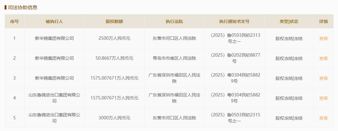 据全国企业信用信息公示系统,10月10日,即墨黄酒约1575万元股权被冻结,冻结期限自2025年10月10日至2028年10月9日,被执行人为即墨黄酒的两大股东新华锦集团和山东鲁锦集团。