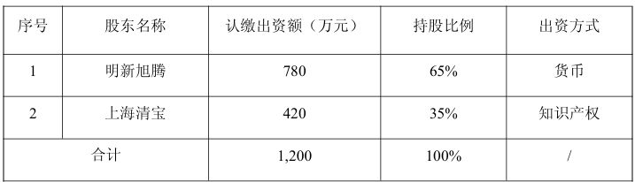 公告显示,旭清灵动总注册资本1200万元,明新旭腾以自有资金现金出资780万元,占比65%,凭借现金出资主导股权结构;上海清宝以机械手生产技术相关知识产权作价420万元出资,占比35%。