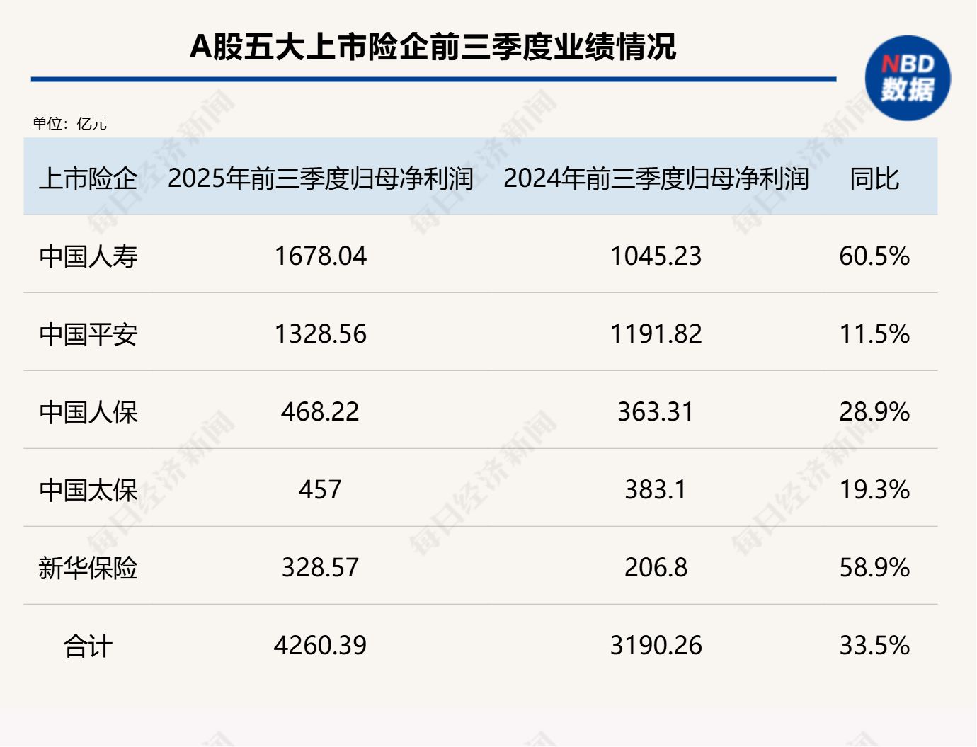 随着10月结束,五大上市险企的三季报数据也悉数出炉。中国平安、中国人寿、中国人保、中国太保和新华保险等五家A股上市险企前三季度归母净利润合计达4260.39亿元,较去年同期增加超千亿元,同比增长达33.5%。