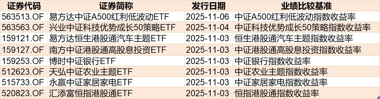 目前已有8只ETF披露下周发行,跟踪标的为家电、农业、银行、汽车主题等。