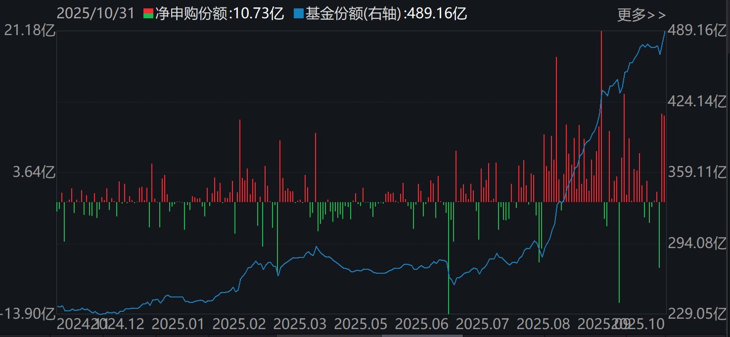 其中,沪深300ETF、科创50ETF在10月获得超30亿元资金净流入。