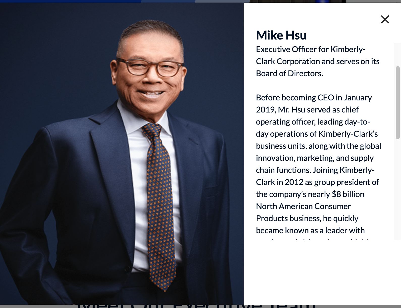 金佰利官网截图,金佰利董事长兼首席执行官Mike Hsu