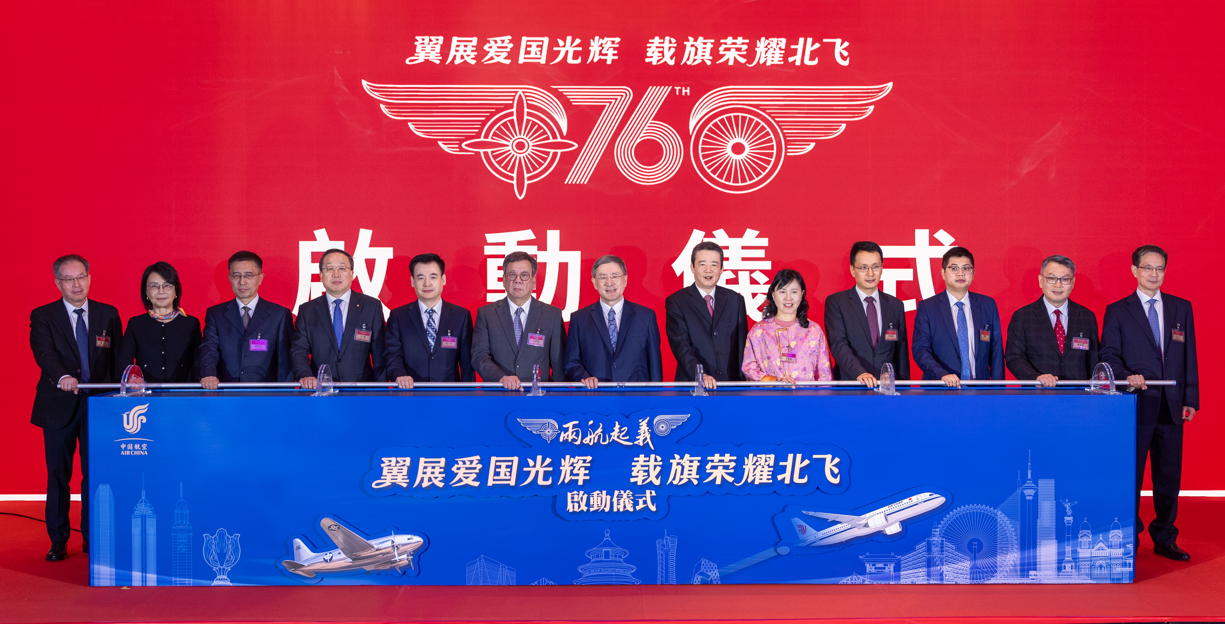 11月9日是“两航起义”纪念日,以C919首次载旗执飞北京至香港航线为契机,中航集团策划举办“翼展爱国光辉 载旗荣耀北飞——国航C919重飞‘两航起义’北飞光辉航程”系列主题活动,计划于11月9日“两航起义”76周年纪念日当天,以C919飞机执飞香港—天津航线,重飞当年“两航起义”北飞航程,以致敬“两航起义”爱国壮举,弘扬爱国主义精神,展现中国民航从筚路蓝缕到展翼高飞的光辉历程。活动启动仪式现场庄严热烈,香港特区政务司副司长卓永兴、香港爱国主义教育工作小组组长李慧琼、中国航空集团有限公司董事崔晓峰、“两航”联谊会代表等先后致辞,共同回顾76年前“两航起义”的历史性时刻,深切缅怀老一辈民航人对祖国的赤子情怀,致敬“两航精神”,共话中国民航几十年来的快速发展,展望中国民航事业的美好未来。