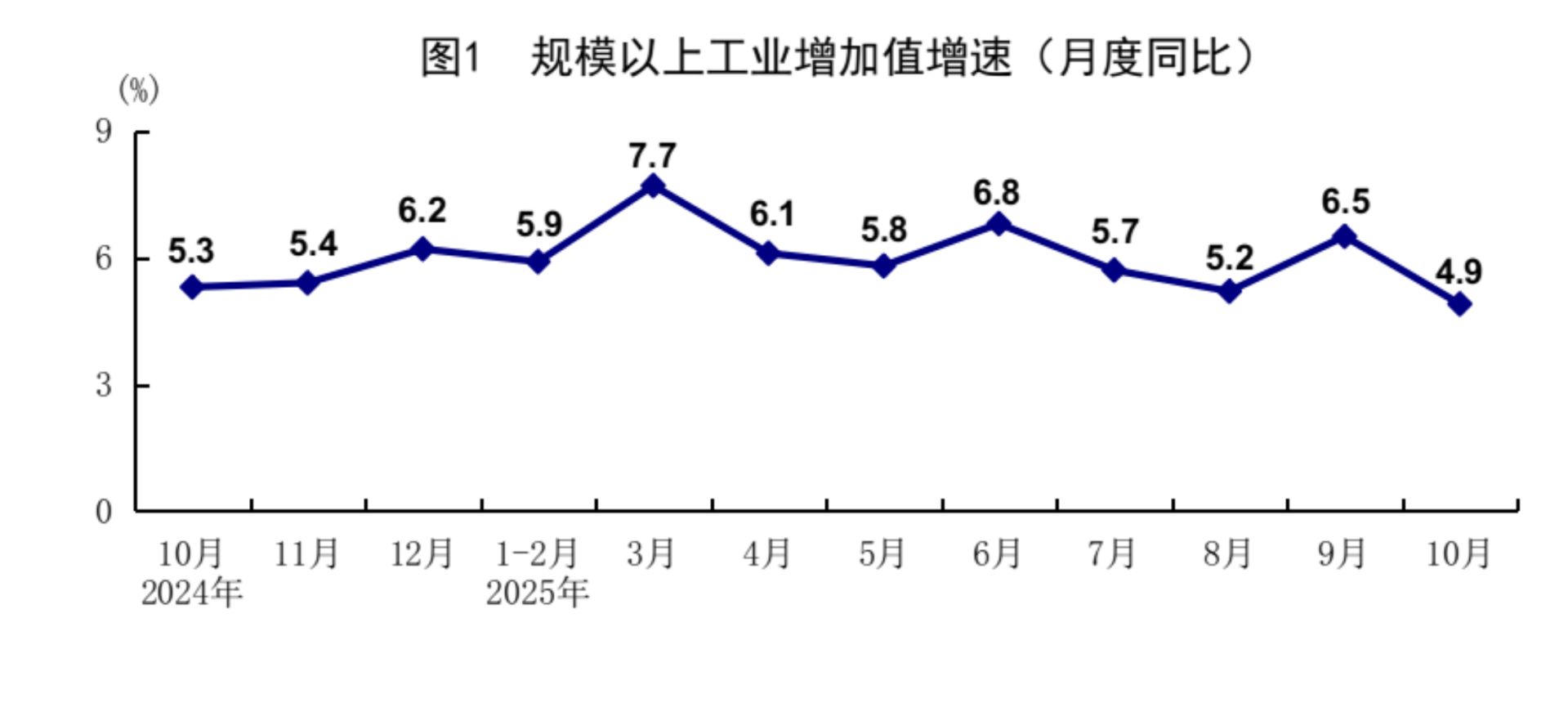 10月份规模以上工业增加值同比增长4.9% 图片来源:国家统计局