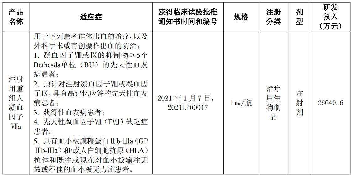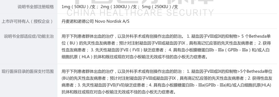 天坛生物旗下的产品则更贴近诺其。去年12月31日,公司发布了注射用重组人凝血因子Ⅶa的Ⅲ期临床试验总结报告,其适应证为用于5种规定情形的成人及青少年(≥12岁)患者群体出血的治疗,以及外科手术或有创操作出血的防治。