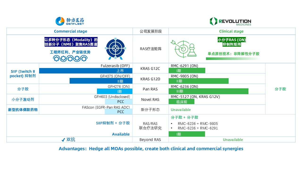 吕强和团队都不回避这一点,反而会因为专业投资机构的了解需求,在路演时专门用一页PPT介绍公司与Revolution Medicines的管线对照图。