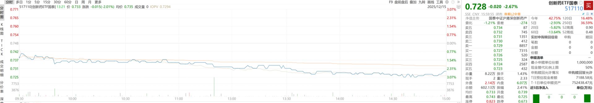 创新药ETF(517110)、科创创新药ETF(589720)单日下跌2.67%