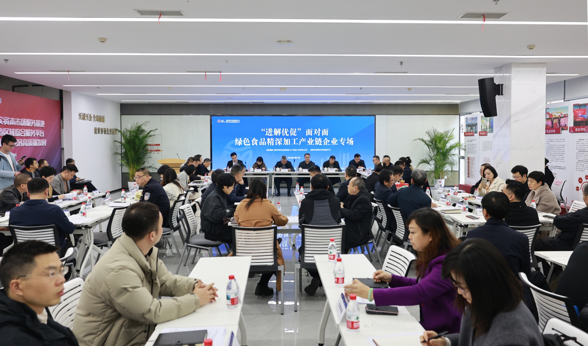 12月17日,“进解优促”面对面——绿色食品精深加工产业链企业专场活动在成都市民营经济发展促进中心举办。相关市级部门以及相关区(市)县,成都交子金控集团、成都益民集团等市属国企,与30余户绿色食品精深加工产业链重点企业负责人一同,围绕市场拓展、政策支持、金融服务等企业发展中的难点堵点,面对面沟通,面对面解答,实打实解决问题。同时,相关行业协会和链主企业代表还就绿色食品产业科技创新、应用场景创新、组建绿色食品产业引导基金等进行建言献策,共同搭建政企协同“直通车”,为产业链强链延链补链注入新动能。