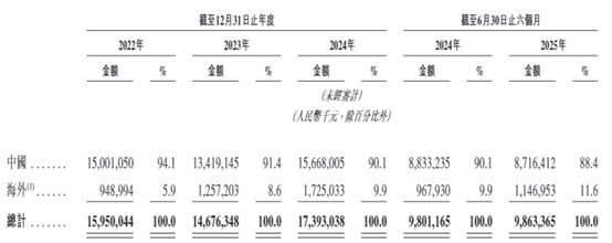 招股书称,潍柴雷沃已建立境内外的销售和经销网络,但报告期内公司主要的收入来源为中国,收入占比分别为94.1%、91.4%、90.1%和88.4%。