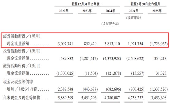 对此,公司在招股书中解释称,主要是因为6.737亿元的税前利润,经多个项目调整,包括非现金及非经营性项目(主要包括物业、厂房及设备折旧人民币8380万元),以及营运资金变动(主要包括存货及其他合同成本减少8.18亿元,及贸易应收款项及应收票据增加23.36亿元)。