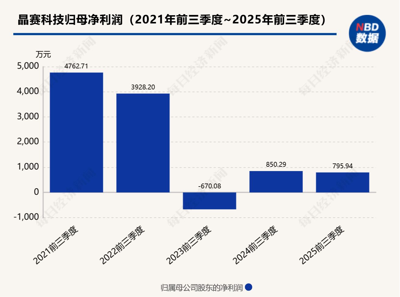 然而,战略协同的美好愿景必须面对财务并表的残酷现实。晶赛科技自身的盈利能力在2025年也面临挑战。三季报显示,公司2025年前三季度归母净利润为795.94万元,同比下降6.39%;扣非净利润更是下降10.68%至493.21万元。