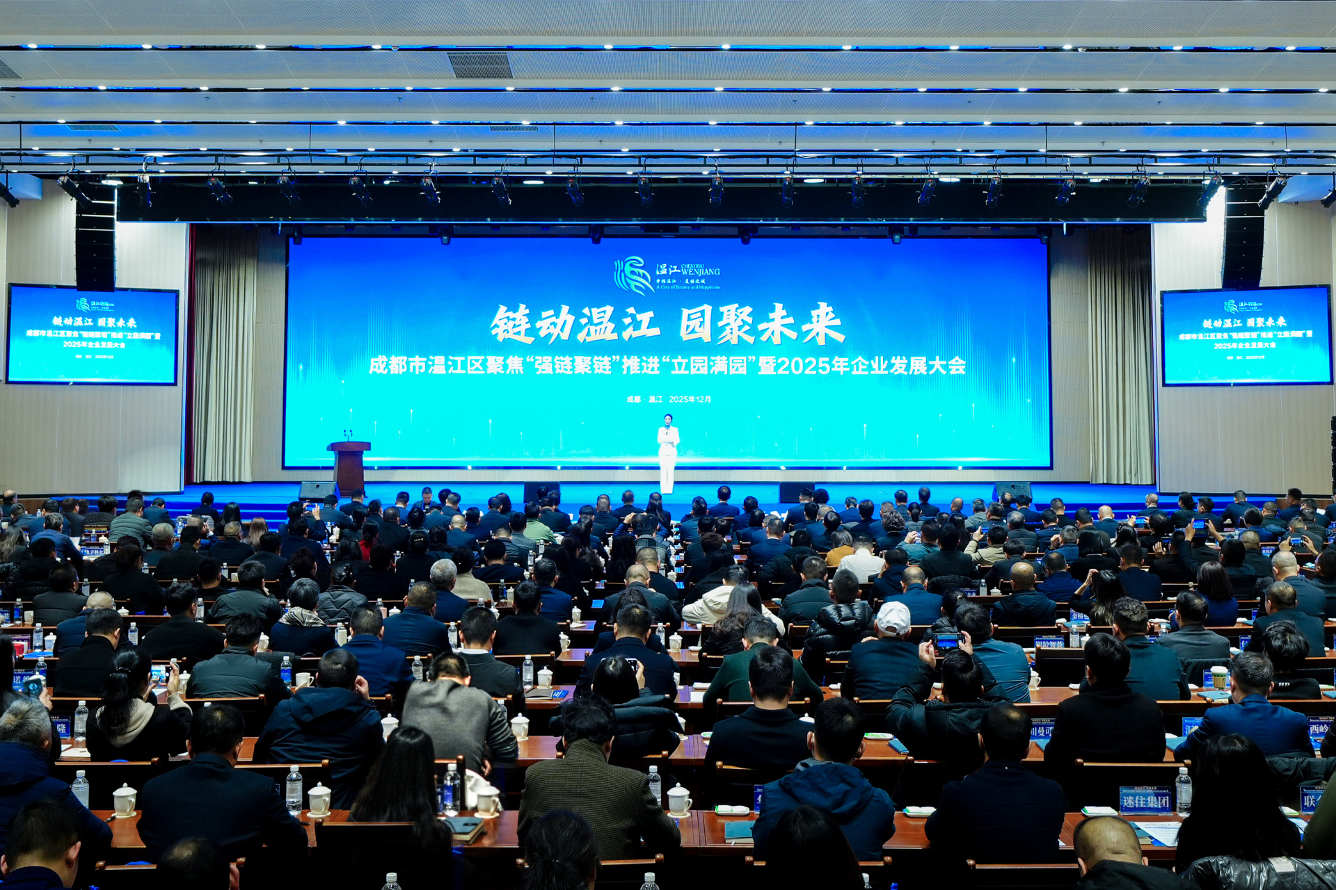 12月26日,成都市温江区召开聚焦“强链聚链”推进“立园满园”暨2025年企业发展大会,300余家企业、金融机构、科研机构、高校院所、产业商协会(联盟)代表如约相聚,共襄企业发展盛举,共话温江高质量发展新篇。这是温江区连续第三年召开企业发展大会。