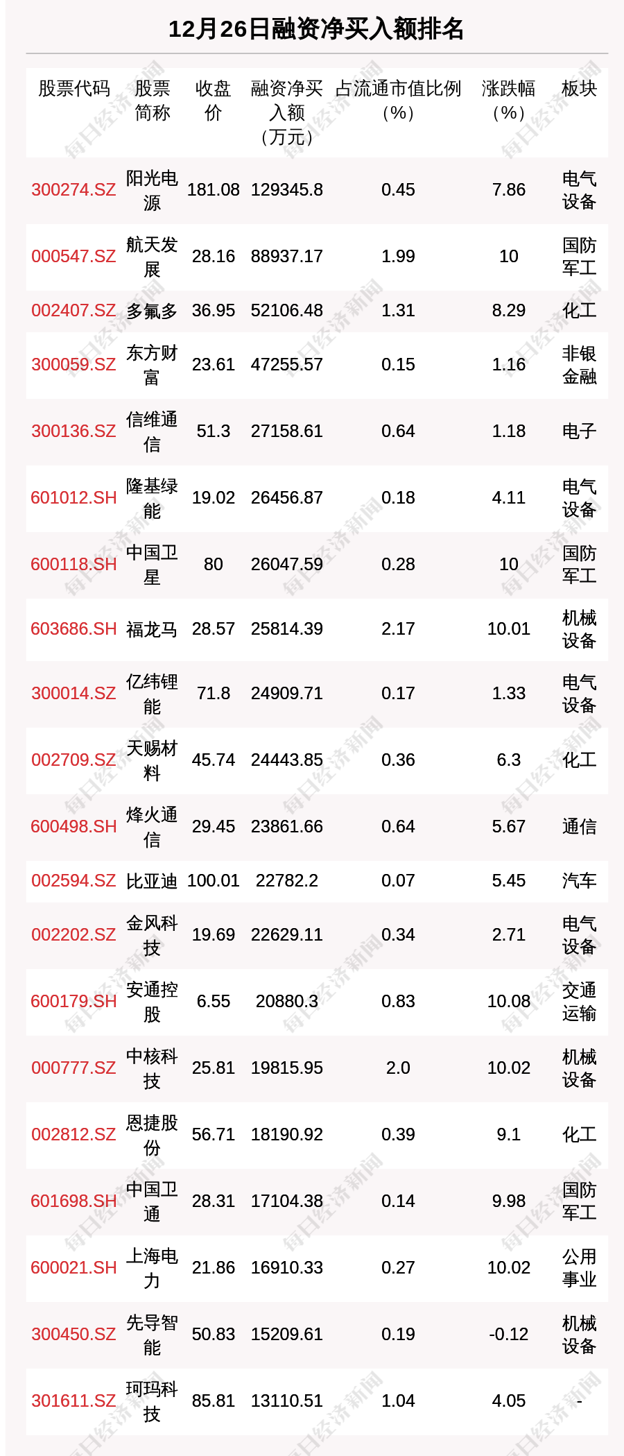 从融资资金净买入金额来看,共有28只个股净买入金额超亿元,其中阳光电源、航天发展、多氟多排名前三,买入金额分别为12.93亿元、8.89亿元、5.21亿元。