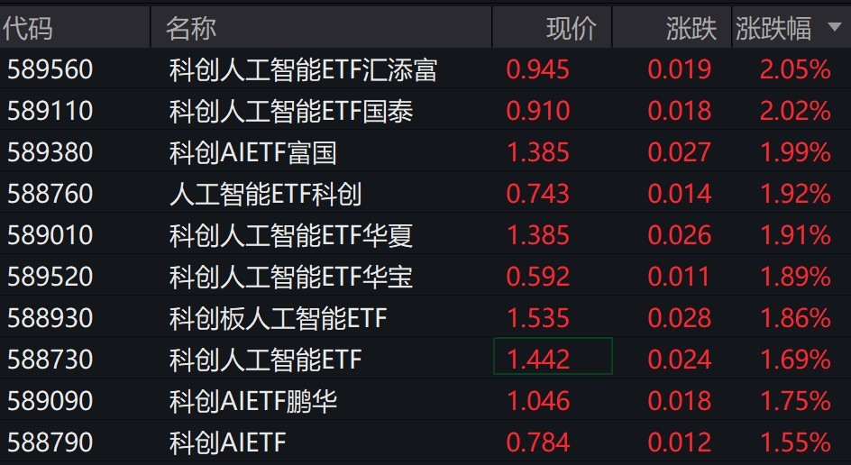 受盘面影响,科创板人工智能相关ETF涨约2%。