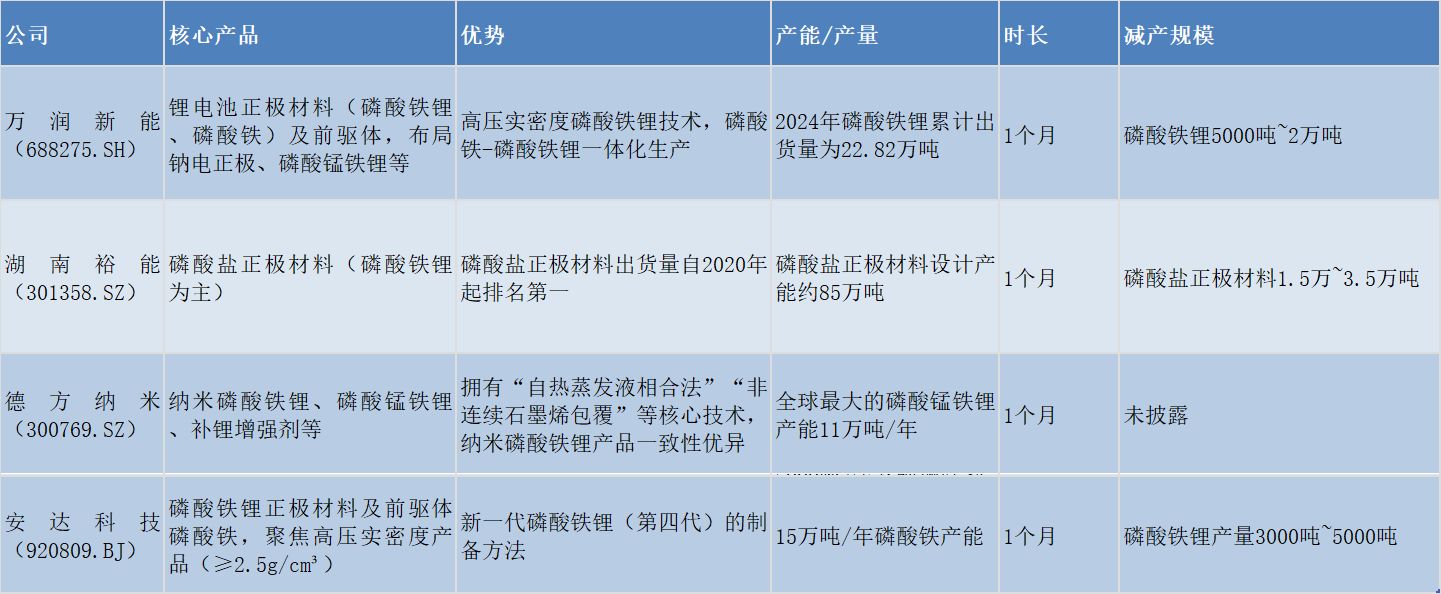 2025年末,行业供不应求之际,4家磷酸铁锂头部企业集体减产,进行为期1个月的检修。除德方纳米未披露减产规模外,另外3家共预计最多减产6万吨。