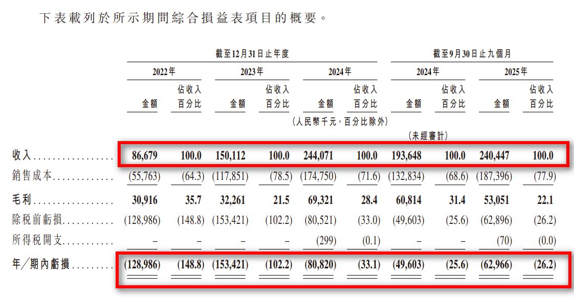 然而,凭借这样的行业地位,曦华科技所取得的收入规模却并不高。2022 ~2024年、2025年前三季度,曦华科技的收入分别为8670万元、1.50亿元、2.44亿元和2.40亿元;同期分别亏损1.29亿元、1.53亿元、0.81亿元和0.63亿元。
