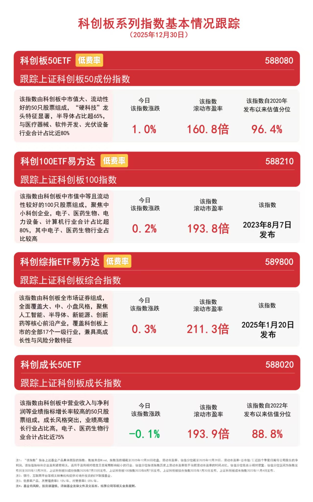 截至收盘,科创板50指数上涨1.0%,科创综指上涨0.3%,科创100指数上涨0.2%,科创成长指数下跌0.1%。