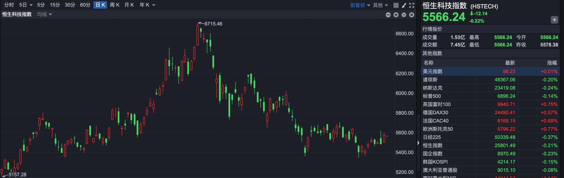 恒生科技指数报5566.24点,低开12.14点,跌幅0.22%。