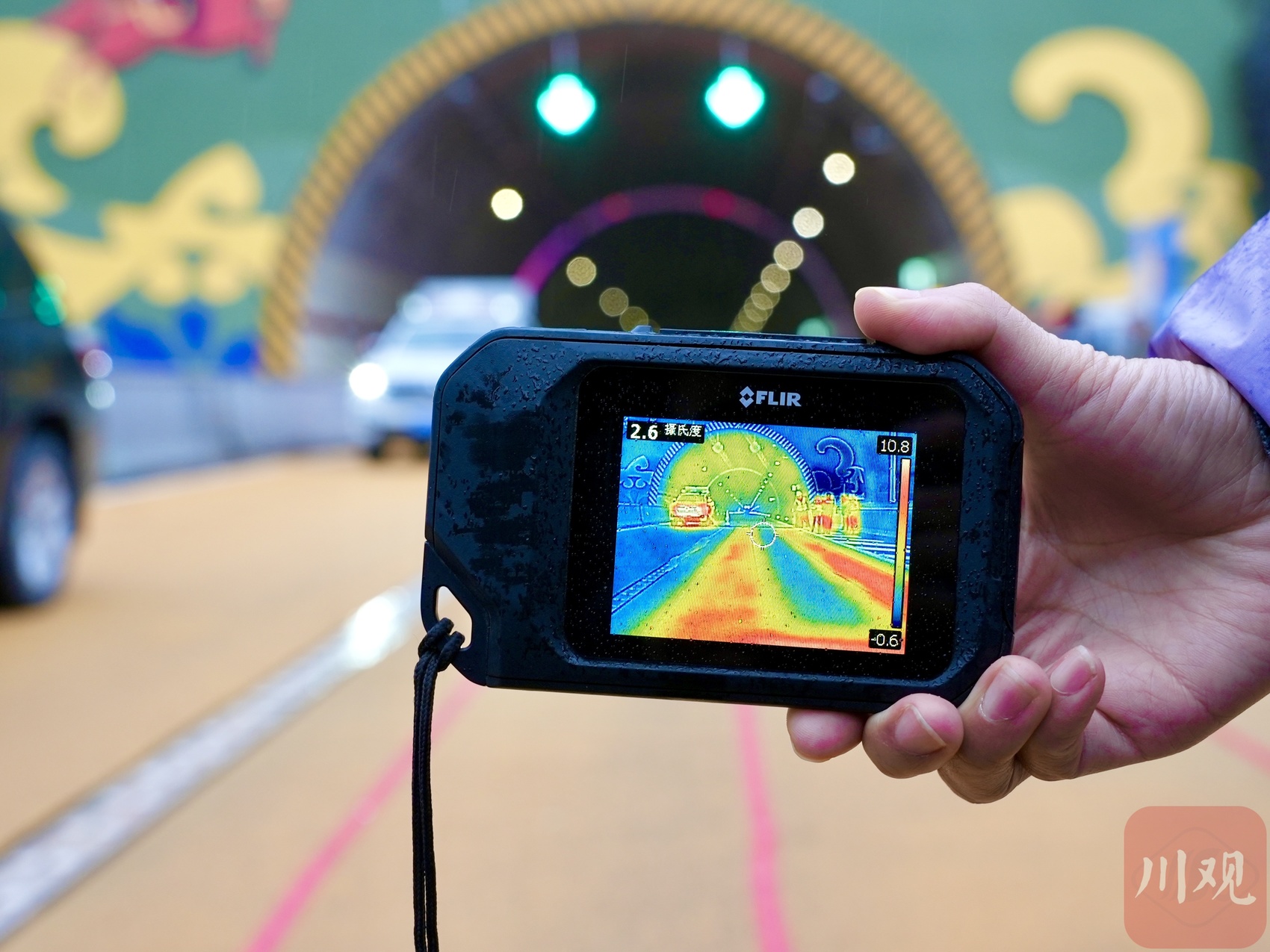 铺设“地暖”的路段,通过热成像仪测试供热效果