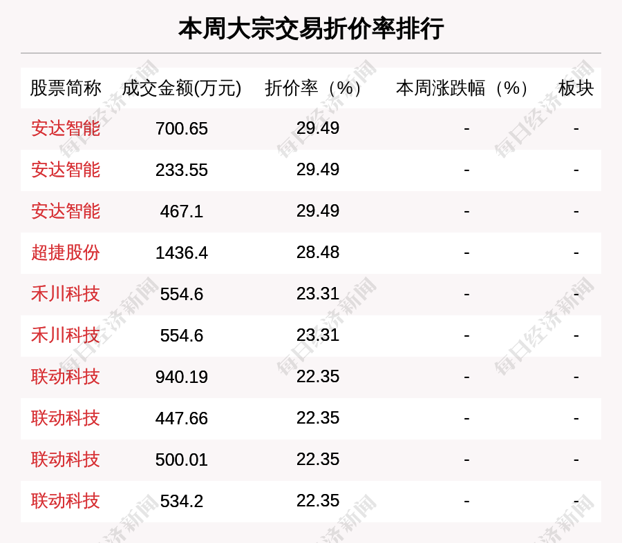 折价交易方面,本周有70笔大宗交易折价率超过10%。