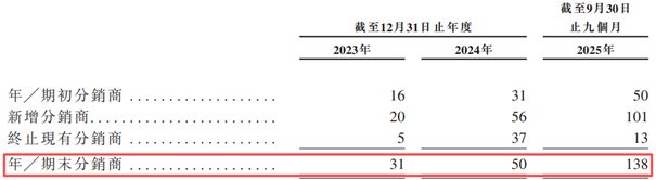 万帮数字绝大部分收入来自直销客户,报告期内来自分销商的收入占比分别仅为5.9%、3.9%和5.4%。虽然截至2025年前三季度,公司分销收入在总收入中还只占5.4%,但万帮数字已经构建了一个多达138家经销商的庞大网络。