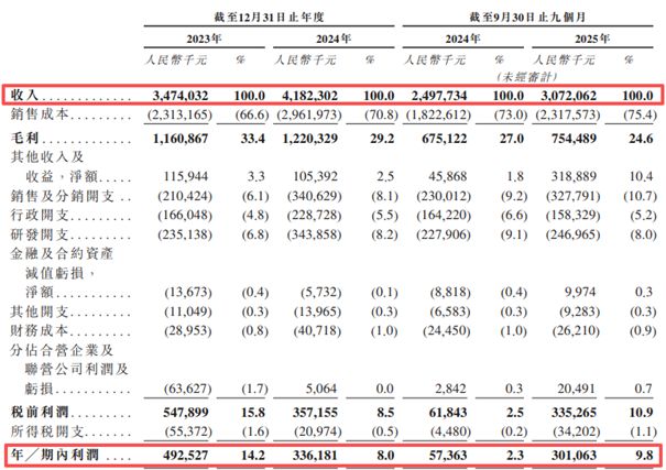 报告期内,万帮数字的收入分别为34.74亿元、41.82亿元和30.72亿元。同期,公司年/期内利润分别为4.93亿元、3.36亿元和3.01亿元。可以看出,虽然万帮数字2024年的收入较2023年增长了约20.4%,但同期利润却下滑了31.74%,出现“增收不增利”的局面。