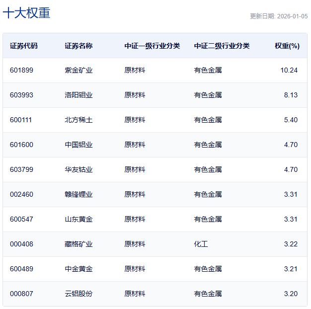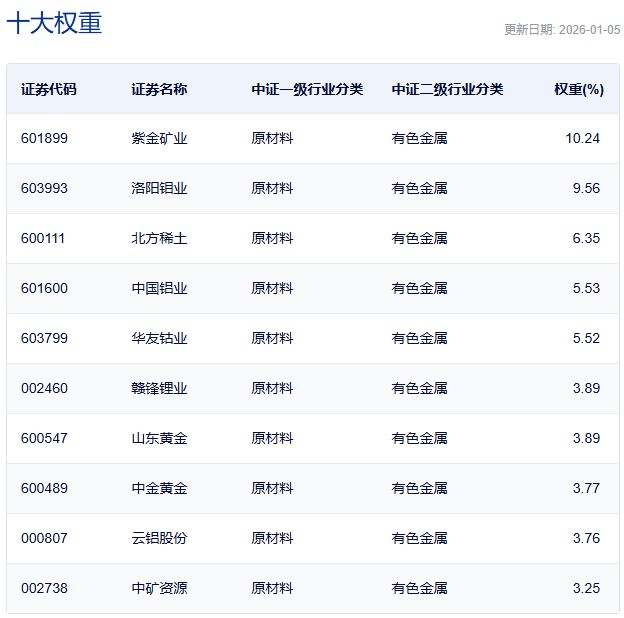 中证有色金属矿业主题指数从有色金属行业中,选取40只拥有有色金属矿产资源储量的上市公司证券作为指数样本,反映有色金属矿业主题上市公司证券的整体表现。