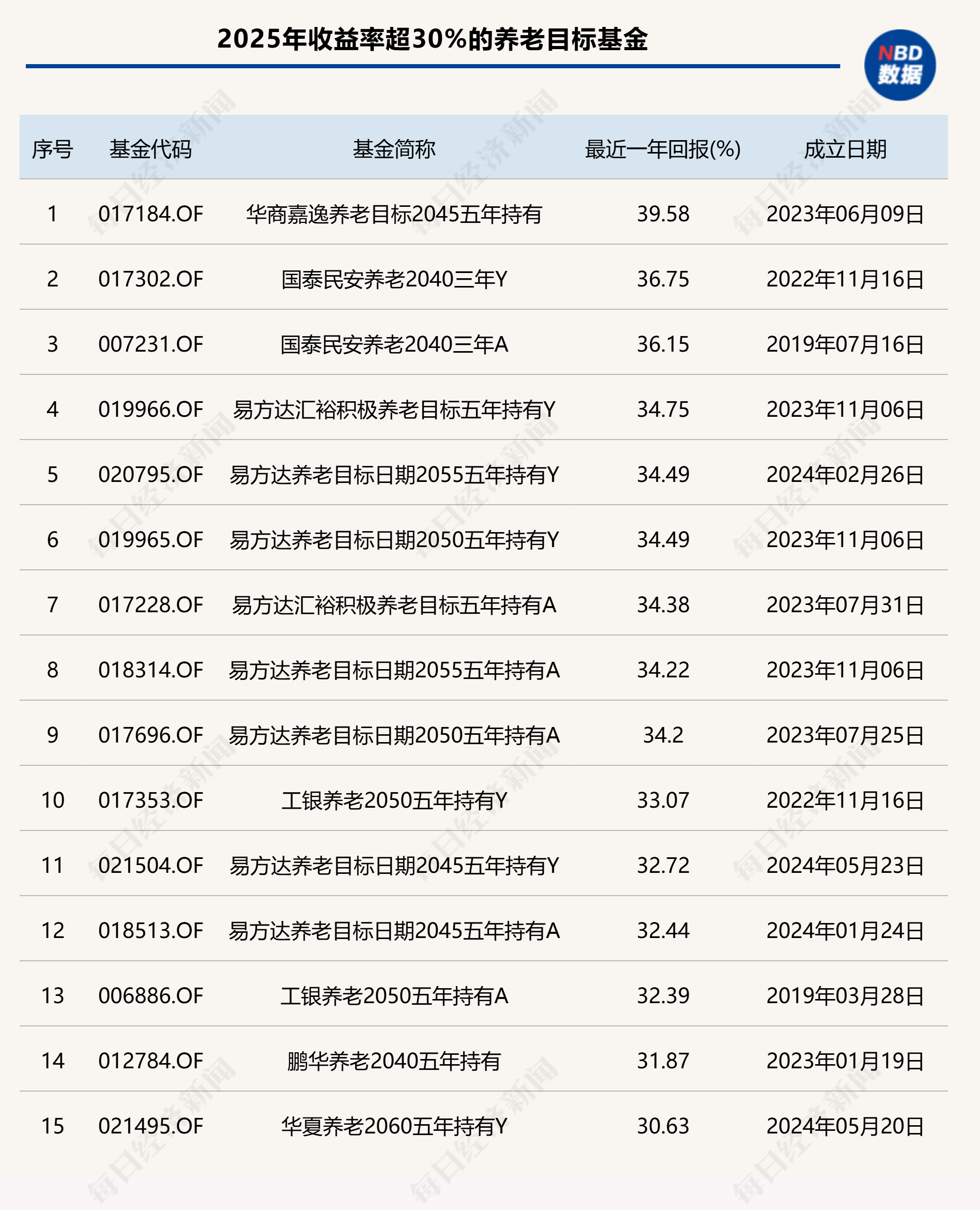 随着基金净值的悉数披露,2025年养老目标基金的整体收益情况也浮出水面,所有产品都实现了年度正收益,其中有15只基金在2025年的收益率超过30%。