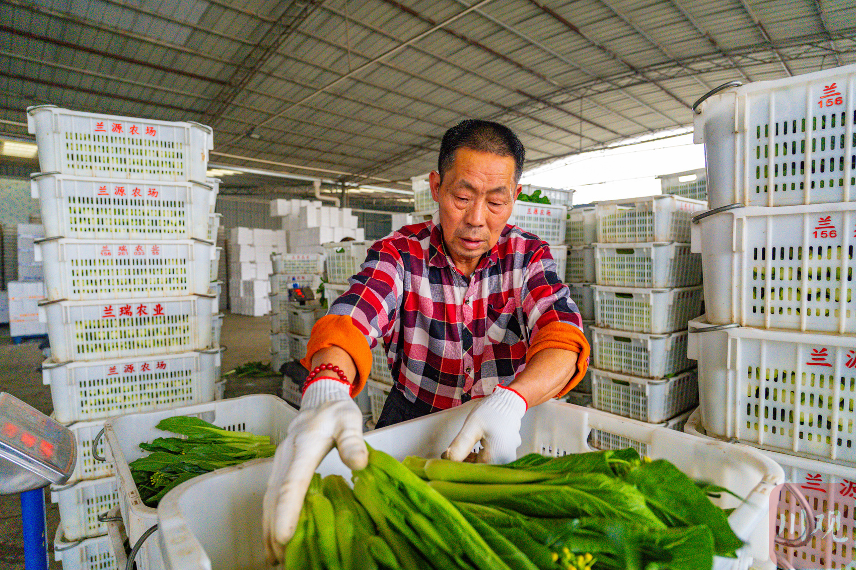 兰源种植家庭农场工人正在打包菜心。吴昊江 摄