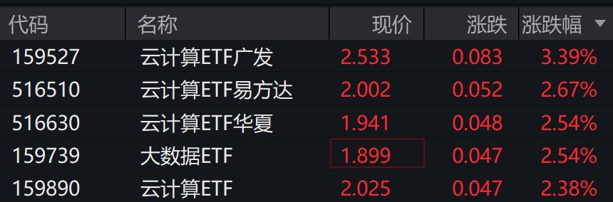 受盘面影响,云计算相关ETF涨超2%。