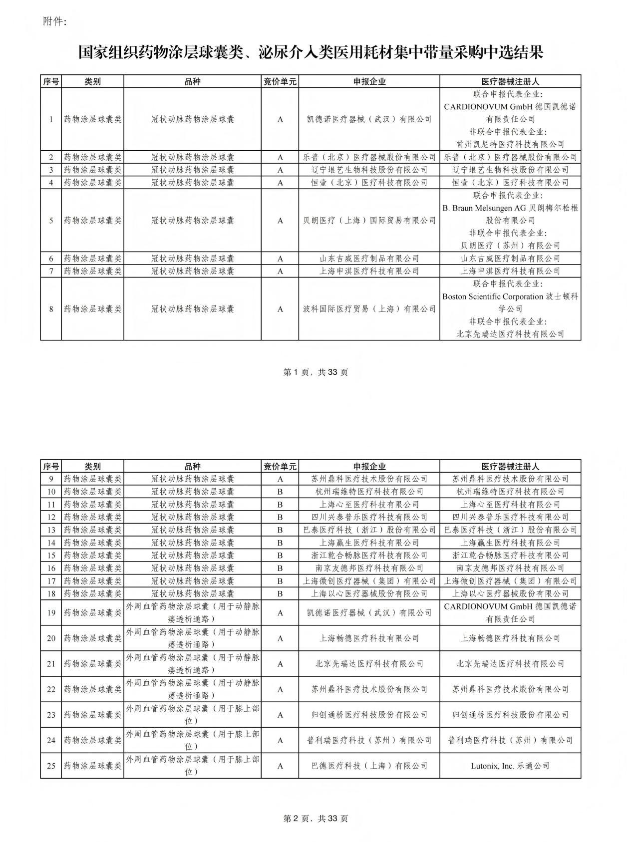 据悉,药物涂层球囊32家企业的42个产品投标并全部中选,泌尿介入类耗材有195家企业的454个产品投标,170家企业的398个产品中选。此外,具有特殊功能的药物刻痕球囊、测压软镜导管等生产企业均中选。