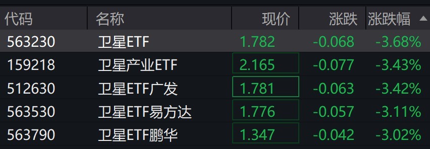 受盘面影响,卫星相关ETF跌超3%。