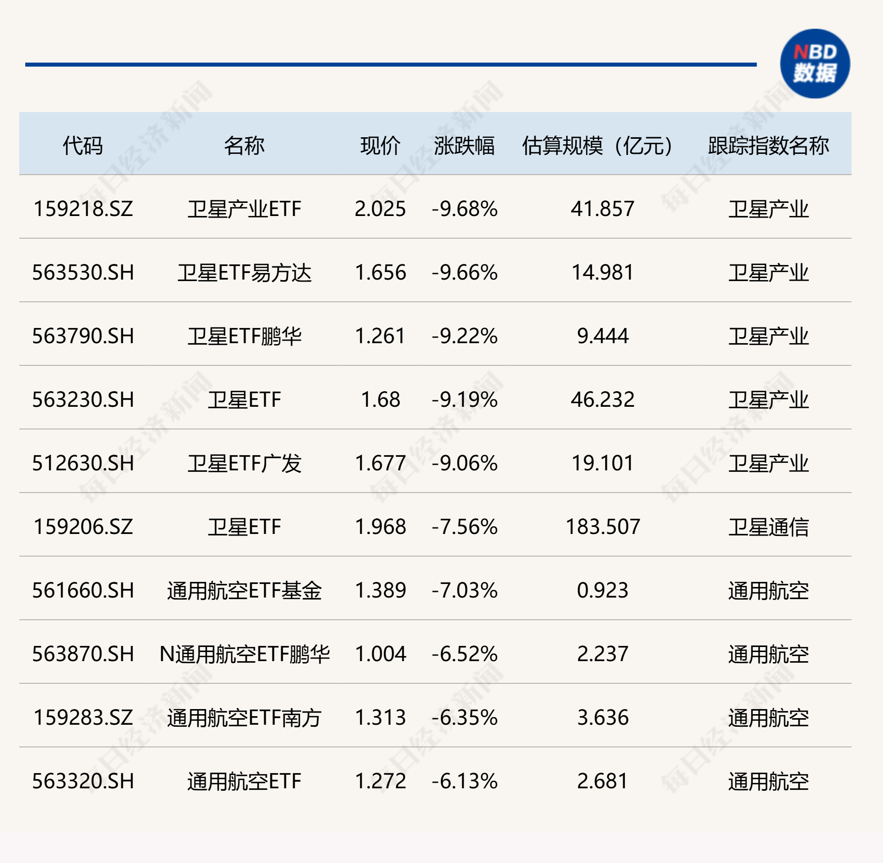 下跌方面,卫星相关ETF跌超9%。