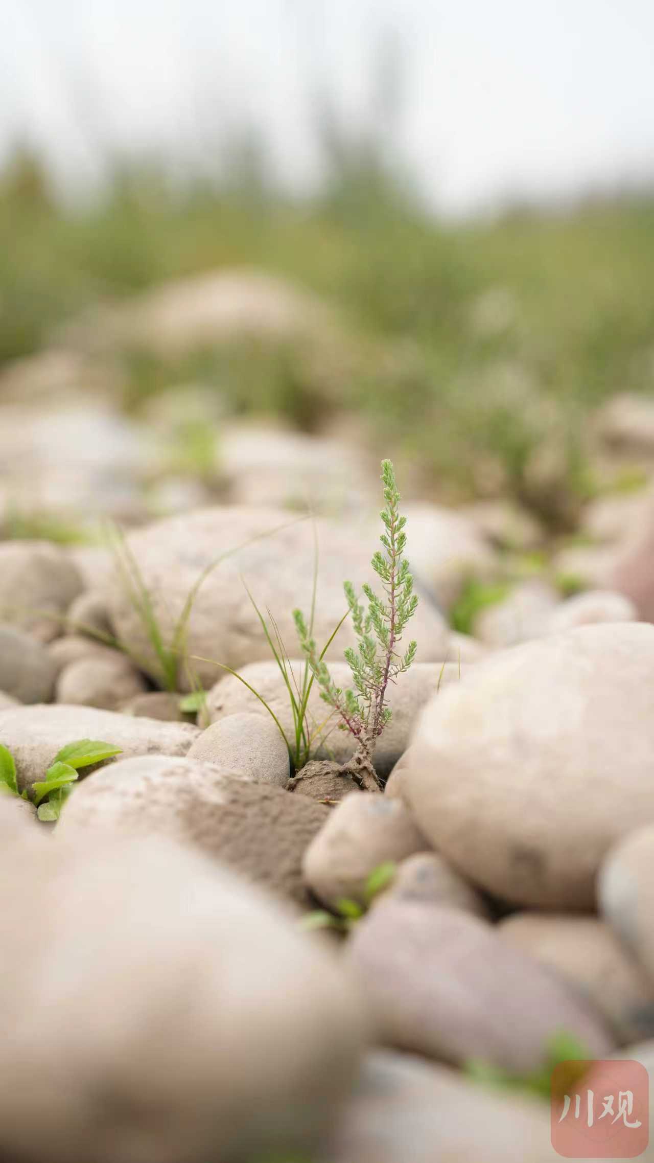“现在这片区域已经看不到放牧了,小苗才能长得这么好。”周涛指着一片新生的紫红色苗丛说,“江水退后,它的种子像蒲公英一样飘到这里,在石缝中扎根发芽。现在一平方米能长出十几株新苗,说明它们已经适应了现在的环境。照这个趋势,两年后这里就能绿成一片。”