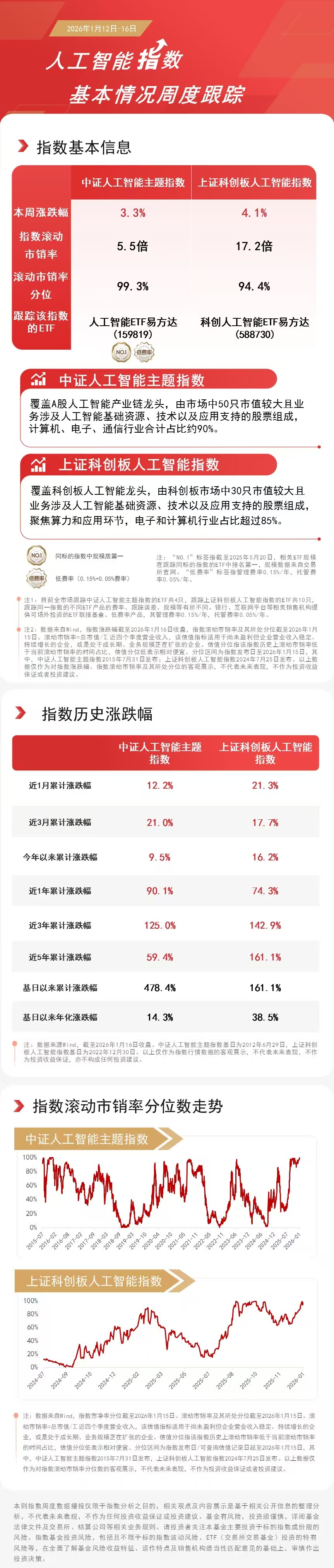 AI产业链股本周震荡走强,芯片、半导体设备等硬科技板块涨幅居前。指数层面,上证科创板人工智能指数上涨4.1%,中证人工智能主题指数上涨3.3%。相关ETF受资金关注,截至昨日,人工智能ETF易方达(159819)和科创人工智能ETF易方达(588730)本周分别获14.9亿元和1.3亿元资金净流入。