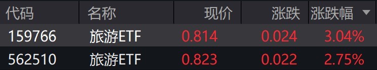 受盘面影响,旅游ETF涨约3%。
