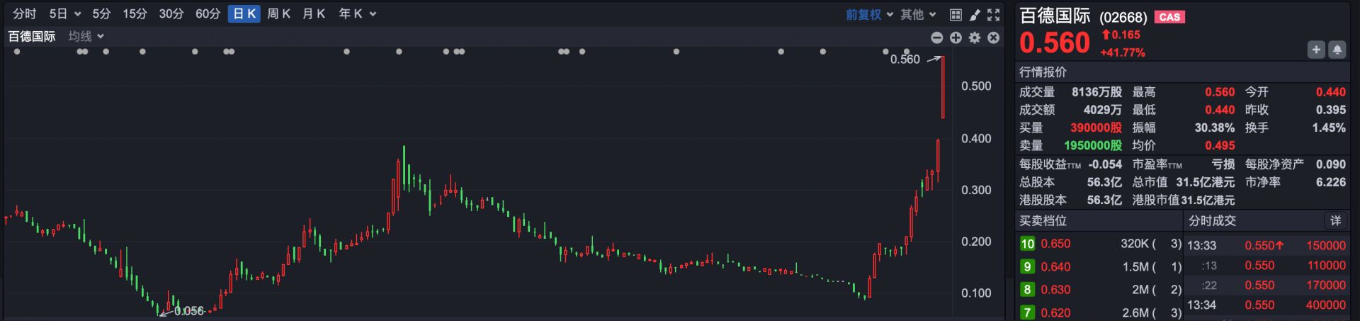 这只“妖股”,就是百德国际(HK02668)。