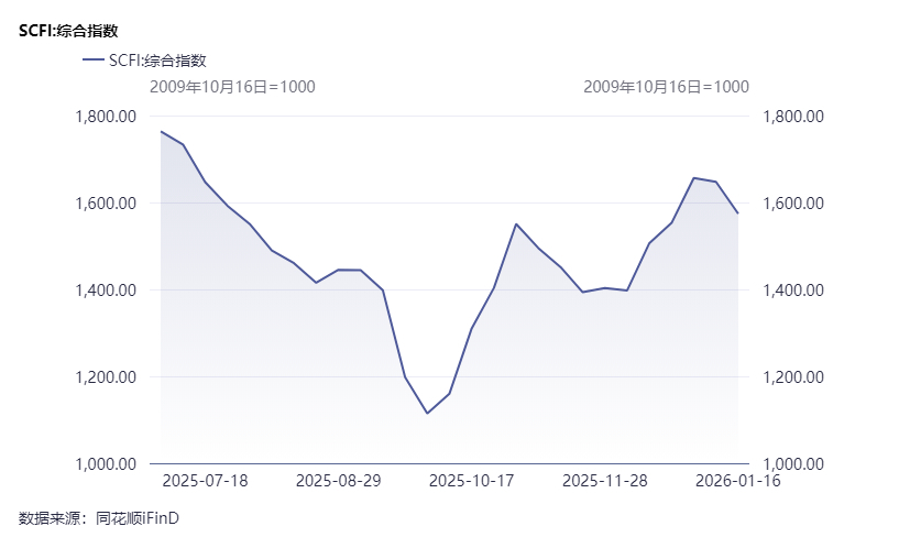 然而,1月中旬船公司宣布调涨欧美运价的计划却未能奏效。上海航运交易所更新后的周报显示,1月16日,上海出口集装箱运价指数(SCFI)为1574.12点,较上期下跌4.4%。