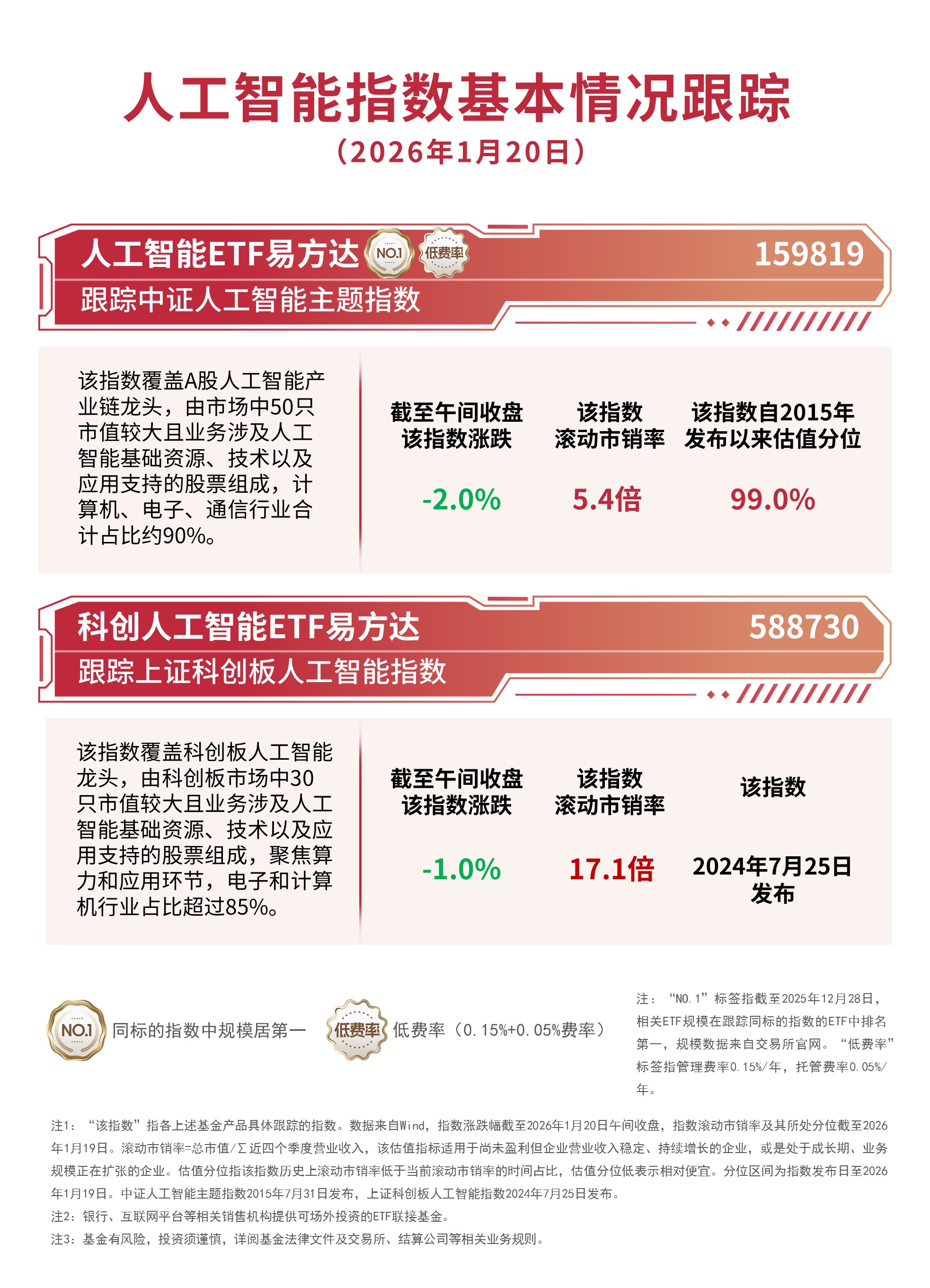 截至午间收盘,中证人工智能主题指数下跌2.0%,上证科创板人工智能指数下跌1.0%,人工智能ETF易方达(159819)半日净申购达1.3亿份。该产品近日获资金大幅流入,此前5个交易日累计“吸金”超20亿元,最新规模超255亿元、位居同类产品第一。