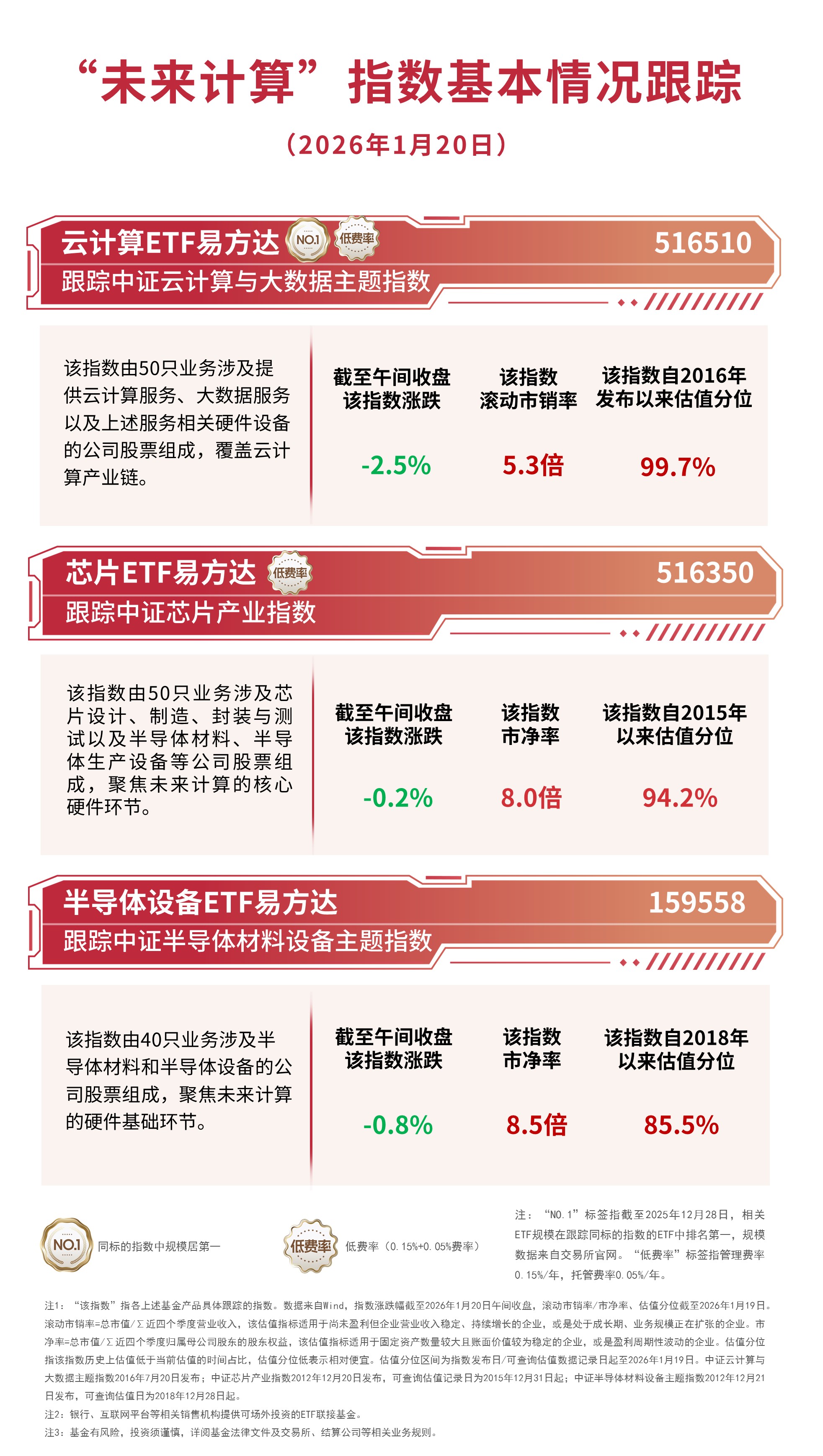 截至午间收盘,中证云计算与大数据主题指数下跌2.5%,中证芯片产业指数下跌0.2%,中证半导体材料设备主题指数下跌0.8%,半导体设备ETF易方达(159558)半日净申购达2200万份。