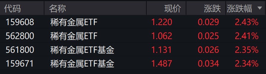 受盘面影响,稀有金属ETF涨超2%。