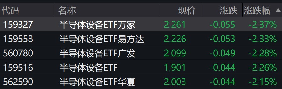 受盘面影响,半导体设备相关ETF跌超2%。