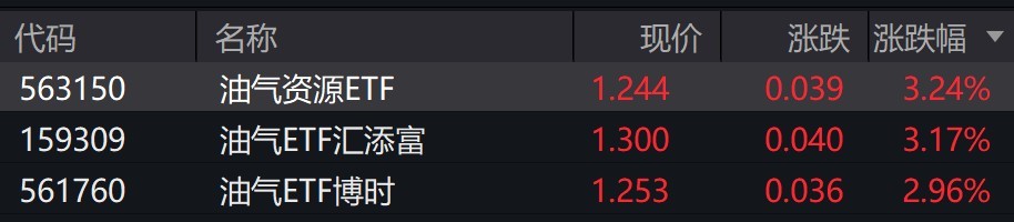 受盘面影响,油气资源相关ETF涨约3%。