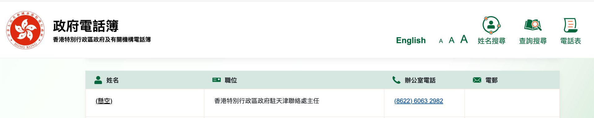 1月22日,《每日经济新闻》记者(以下简称“每经记者”)查询发现,在香港特区政府电话簿中,香港特区政府驻天津联络处主任一职已显示为“悬空”。