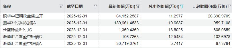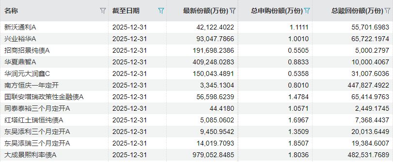 以大成景熙利率债A为例,去年四季报显示,基金总赎回规模达到48.25亿份,总申购规模仅1.80万份;南方恒庆一年定开同期总赎回规模约44.78亿份,总申购规模仅0.80万份;中欧兴华定开总赎回规模约37.94亿份,总申购规模仅0.0019万份。