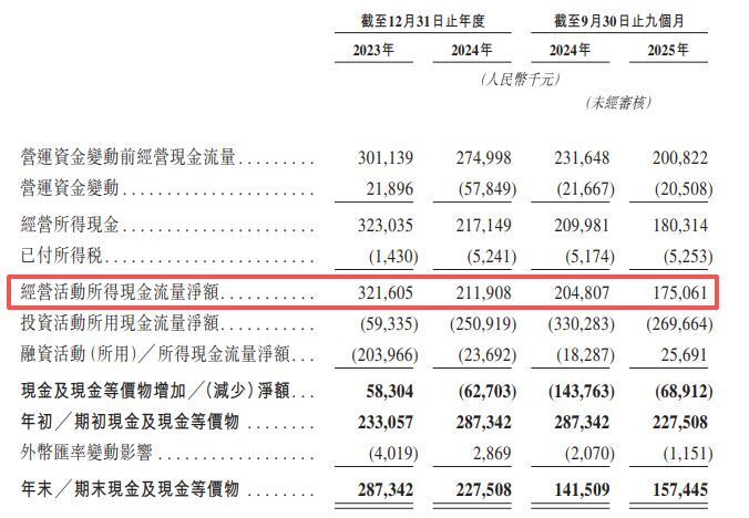 虽然松果出行2025年前三季度的亏损已经同比从1亿元收窄至约6000万元,但公司经营活动所得现金流量净额却从约2.05亿元下滑至1.75亿元。