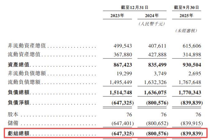 此外,松果出行报告期内还出现股东权益为负的情况:截至2025年三季度末,公司录得亏绌总额(即净资产为负)高达8.4亿元,且流动负债净额达到14.53亿元。对此,公司称:“主要由于向投资者发行的可赎回可转换优先股产生的金融负债所致,该等优先股将于IPO完成后转换为权益。”