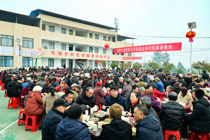 分红大会结束后,60桌坝坝席热闹开席。