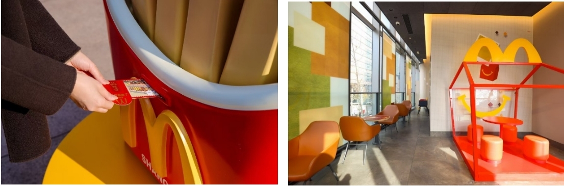 城市中心旗舰餐厅长期设置“薯条邮筒”与“开心魔力盒”等互动装置,增强到店的沉浸式体验。其中,“薯条邮筒”为旗舰店专属打造:顾客通过麦当劳 App 下载注册并任意消费,即可领取旗舰店限定主题明信片;将明信片投入“薯条邮筒”后,餐厅将定期统一寄出,让来自南京东路核心商圈的美味记忆与城市温度“寄送到家”。